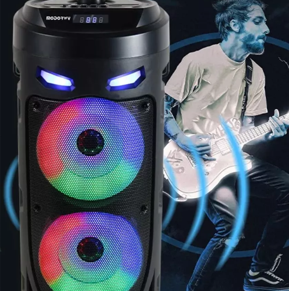 Особенностью данной модели является управляемая LED подсветка, которая добавляет атмосферу и делает ваши вечеринки ещё более яркими. Колонка поддерживает беспроводное подключение через Bluetooth с радиусом действия до 10 метров, что позволяет воспроизводить музыку с мобильных устройств без лишних проводов. Также предусмотрены дополнительные способы подключения через AUX, USB и microSD, что делает её универсальным устройством для воспроизведения музыки.