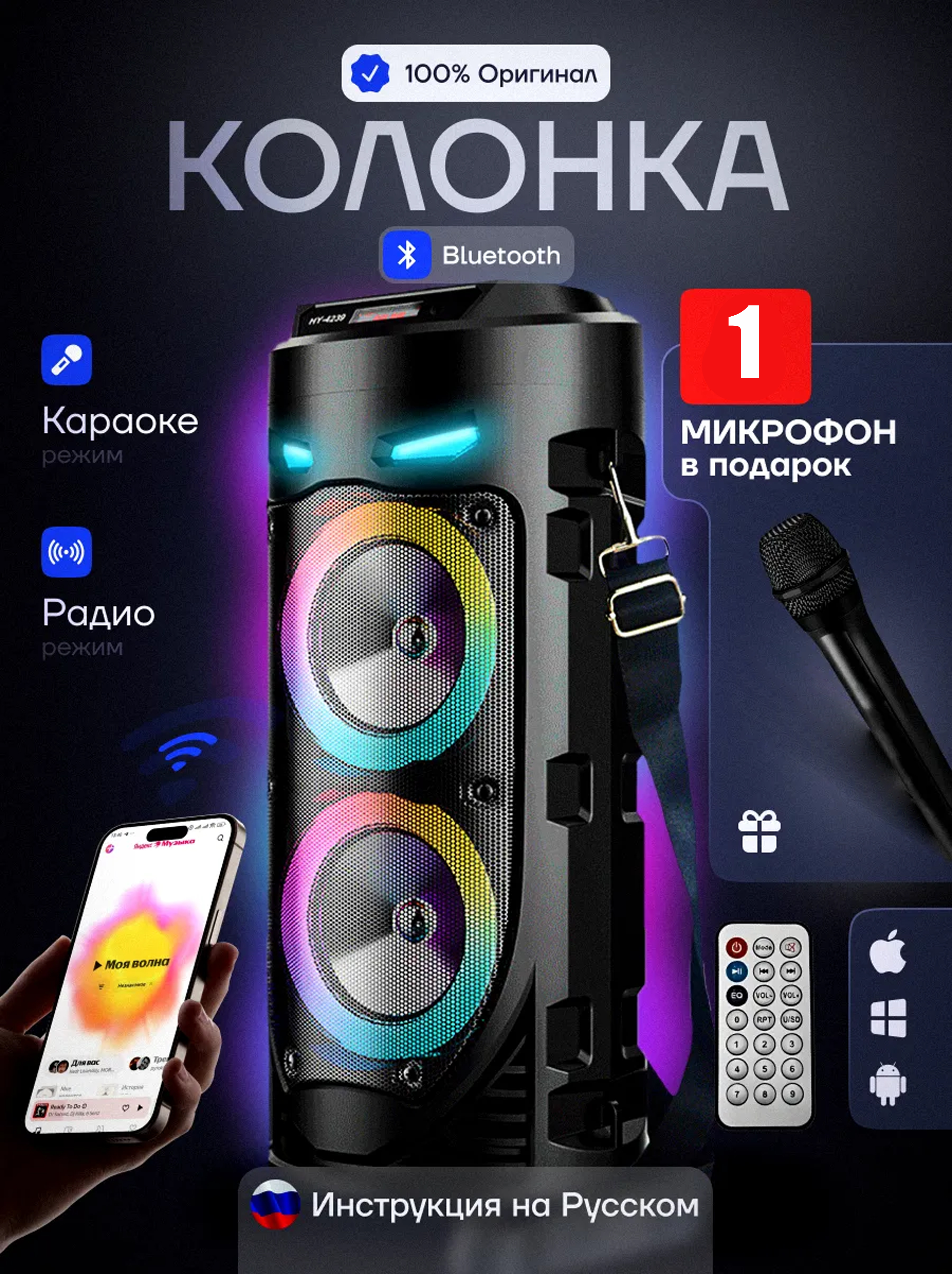 Кроме того, колонка оснащена входом для микрофона, что позволяет использовать её как домашний караоке-центр. С этой колонкой вы сможете не только наслаждаться любимыми треками, но и устраивать незабываемые музыкальные вечера с друзьями и семьёй.